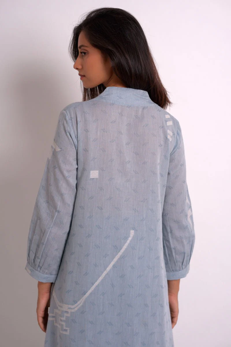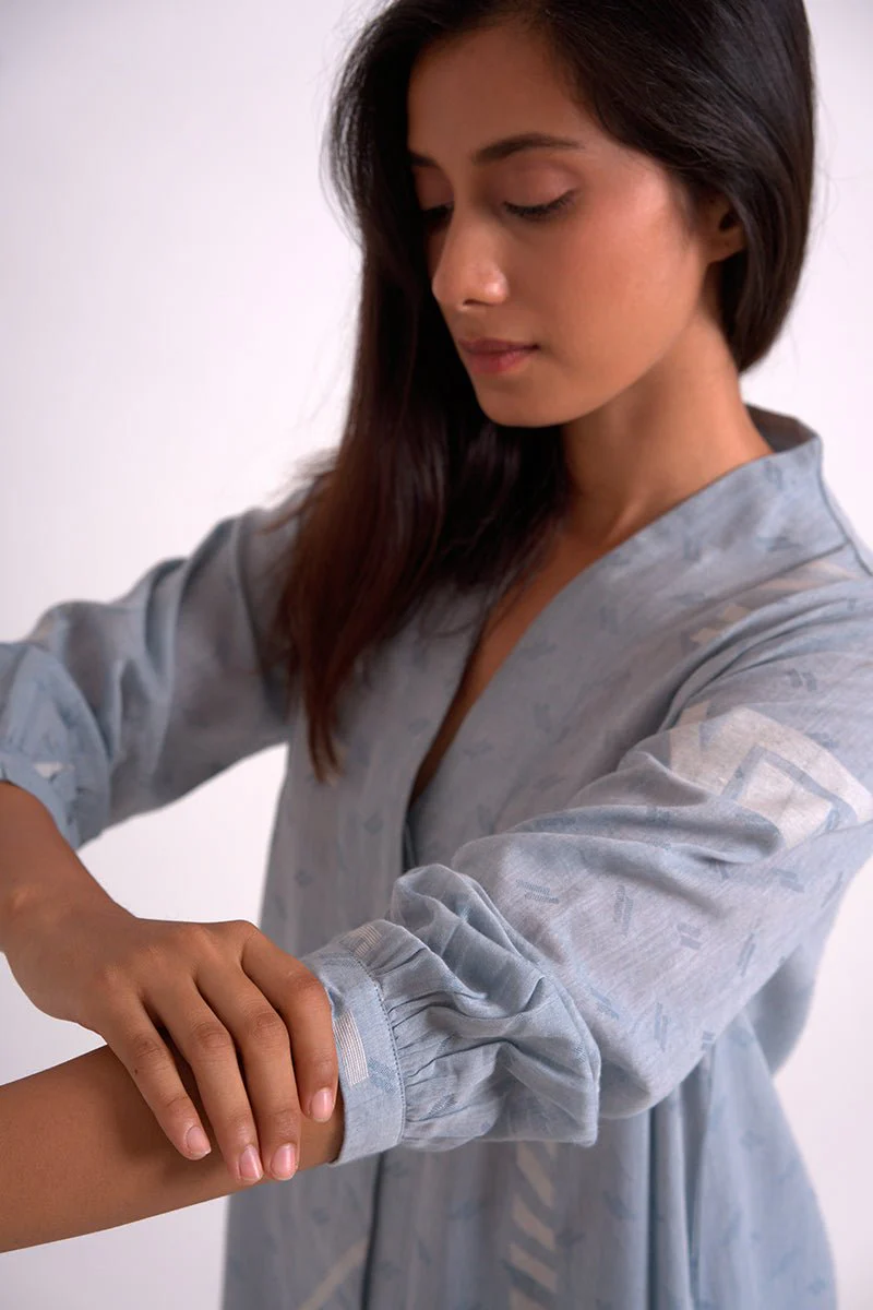 Powder Blue Woven Kurta With Printed Cotton Bottom